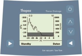 Thopaz is a complete, extremely efficient thoracic drainage system. It is comprised of a suction unit, disposable canisters, and tubings. The set-up and handling of the device is very easy. Well-designed accessories add even more comfort to the lightweight system.